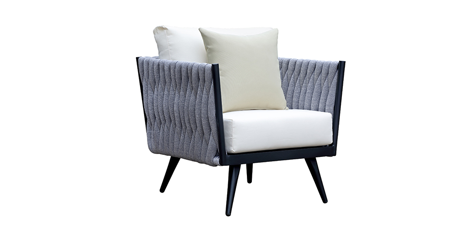 Väderbeständig stödrepsflätning på ryggstödet, i grå färg